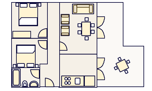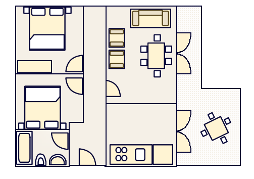Nudimo vam 4 opremljena apartmana, sa osiguranim parkingom, vezom za brodicu, velikim terasama i lijepim pogledom na more, te uporabom roštilja. Dođite i uživajte u miru i tišini malog mjesta, a samo 10-tak minuta vožnje udaljeni od Novalje i Paga.